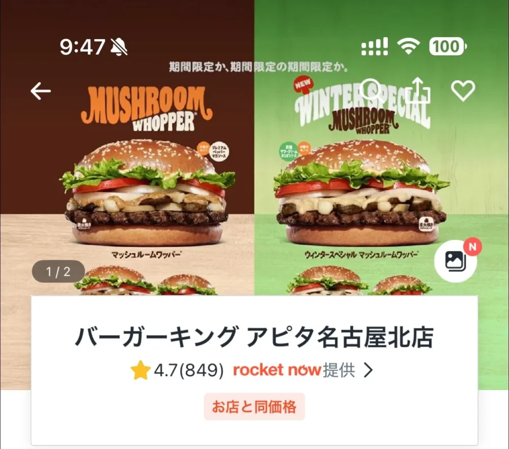 バーガーキング|お店と同価格